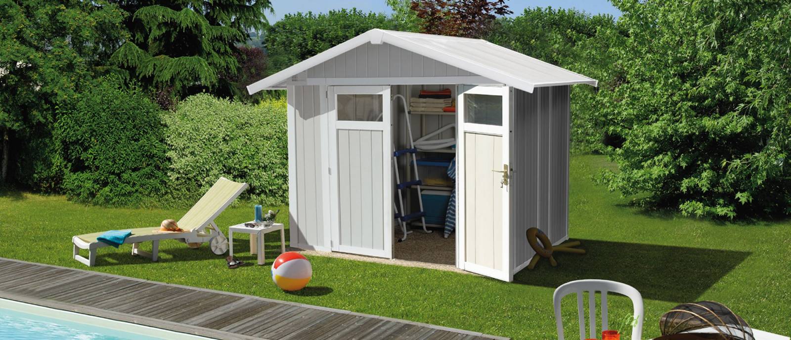 Didier RAVET PRO POSE distribue sur tout le secteur de Villefranche sur Saône la gamme d'abris de jardin de GROSFILLEX, pour le rangement ou le loisir.